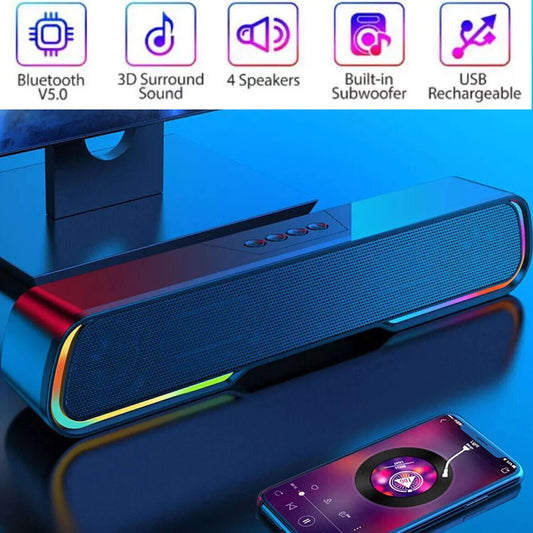 Surround Sound Bar 4 Speaker System Wireless BT Subwoofer TV Home Theater