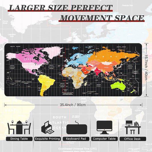 XXL Gaming Mouse Pad 35.40"X15.7"X0.12",Extended Desk Big Mat,World Map Pad with Non-Slip Base,Waterproof and Foldable Pad,Desktop Pad Suitable for Gamers,Suitable for Desktop,Office and Home