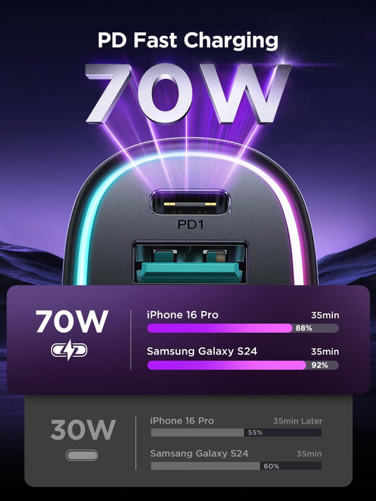 Fast Car Charger 70W 4 Ports Car Charger【A Must for Family Travel】 Super Fast USB C Car Charger Adapter for Iphone 16/15 Pro Max plus Samsung Galaxy S24