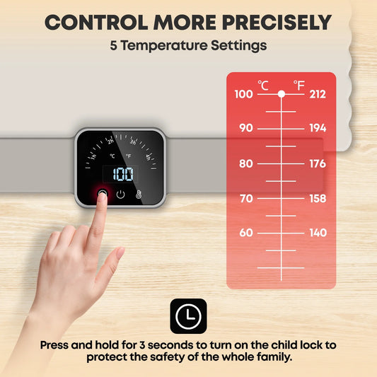 Electric Warming Tray, Portable Large Food Warmers Mat with 5 Level Adjustable Temperature, Warming Mat for Food for Parties Buffets, Full Surface Fast Heating